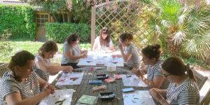 Atelier enterrement de vie de jeune fille au jardin ! 😊 Réalisation de jolies guirlandes lumineuses boutons de lotus en origami. Un bon moment de détente entre copines, sous une …